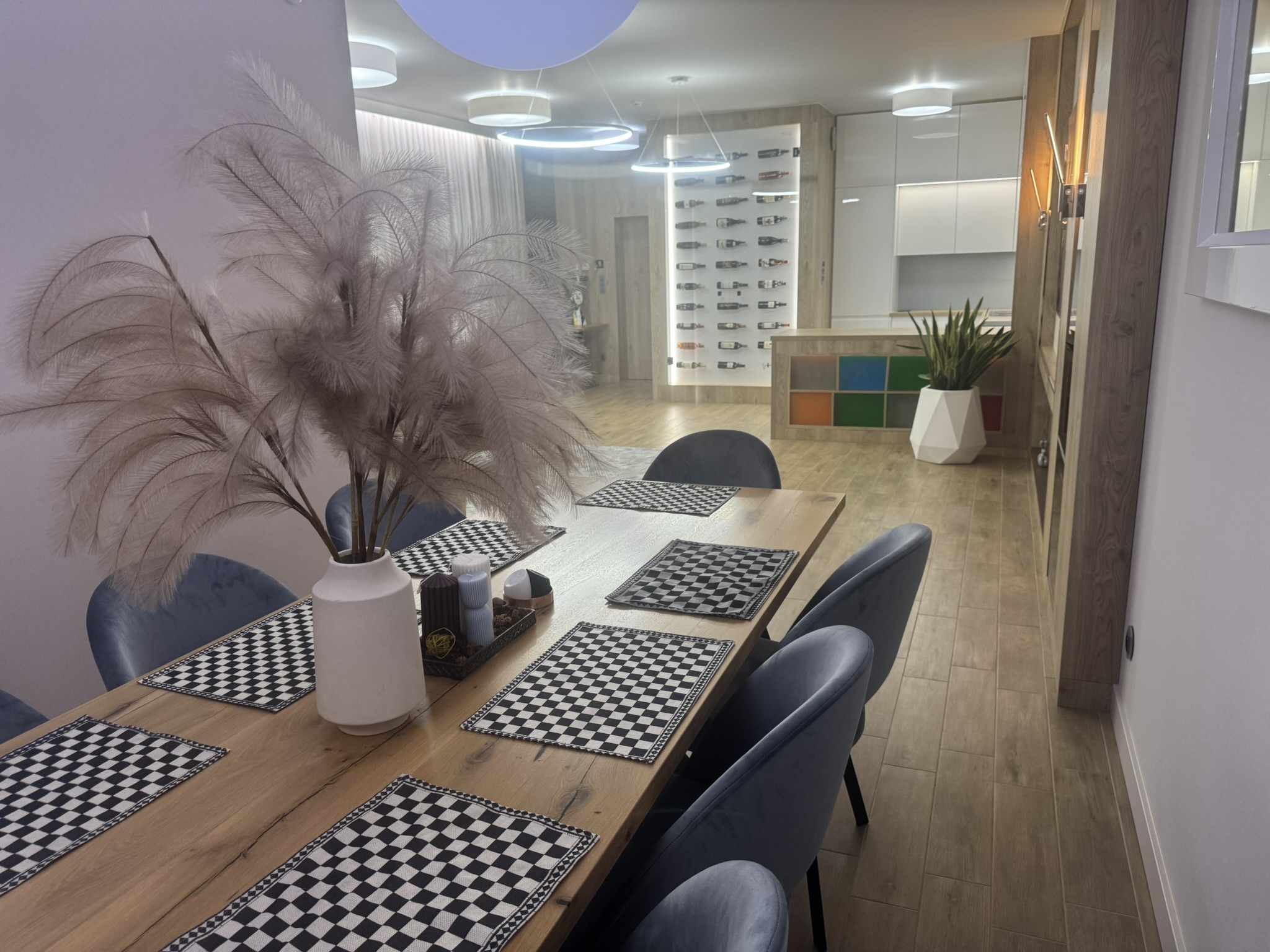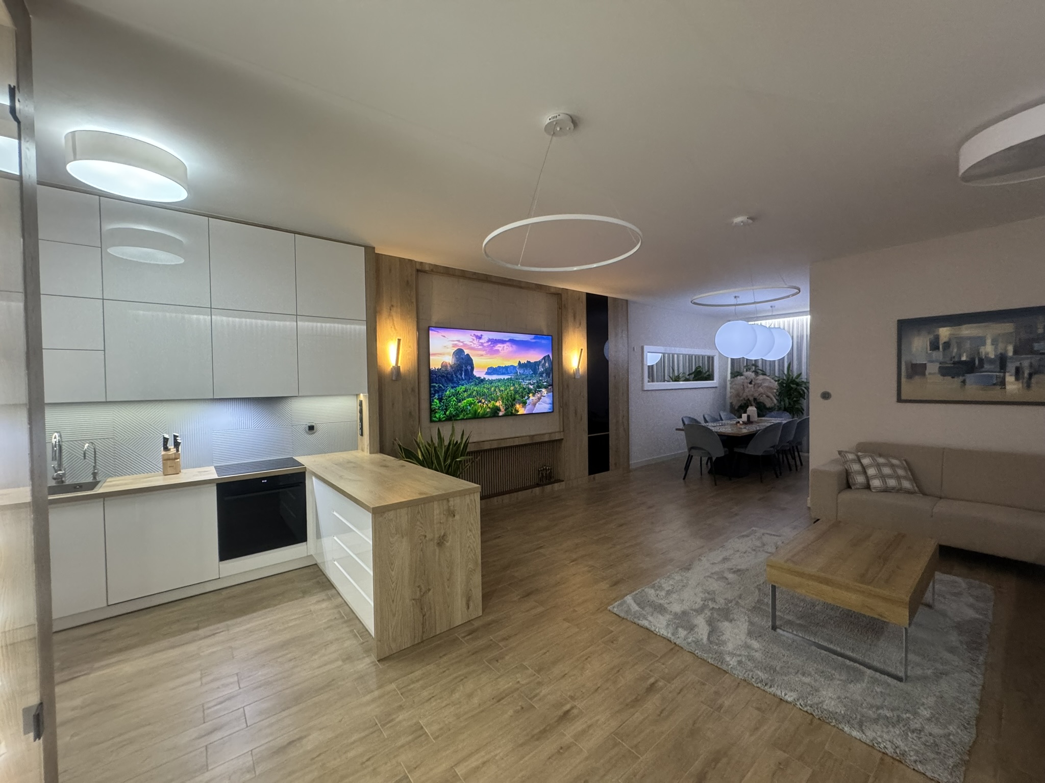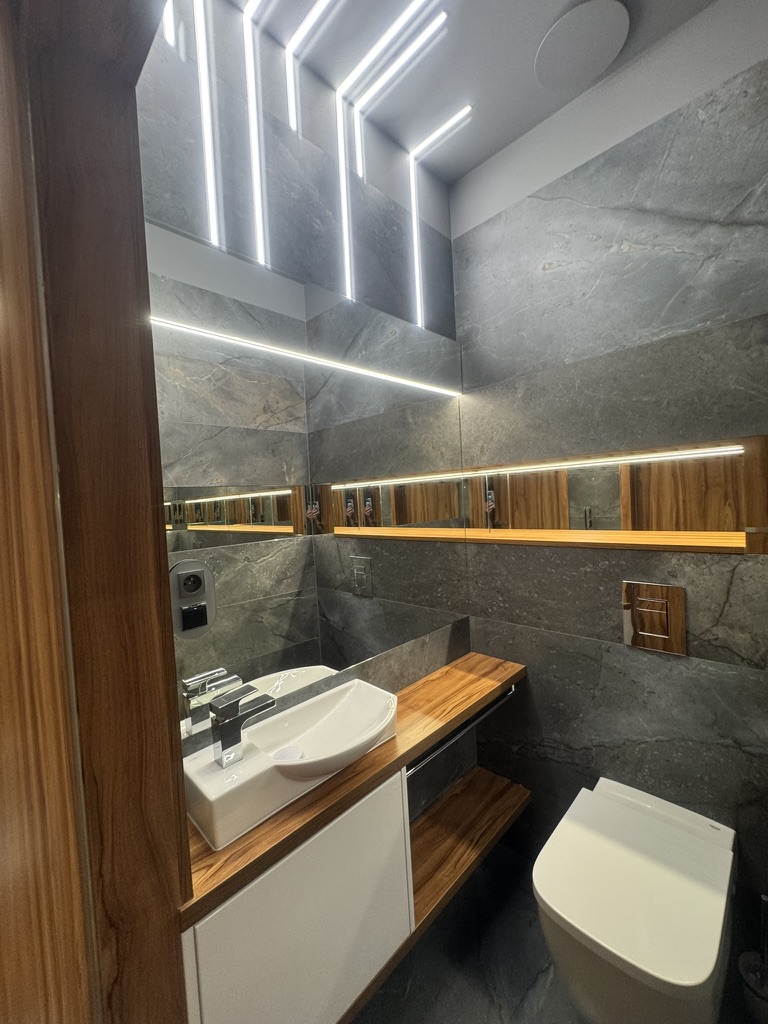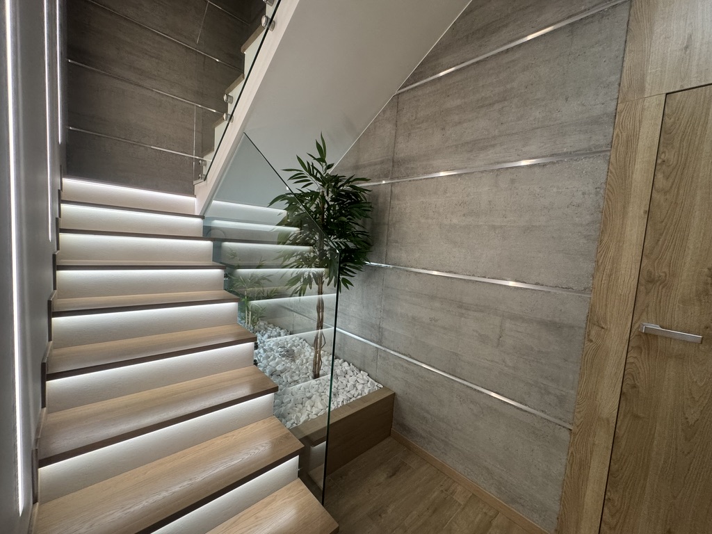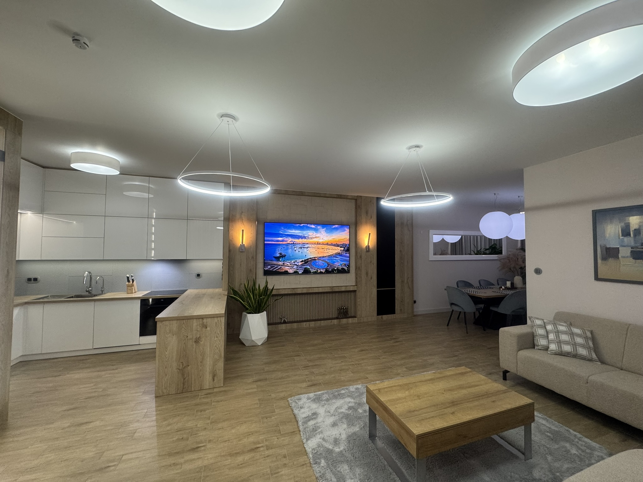 Nieruchomość wyposaż ona jest w instalację fotowoltaiczną o mocy 7,5 kW, co dodatkowo obniż a koszty eksploatacyjne. W domu zastosowano nowoczesne rozwiązania typu smart home, w tym zdalnie sterowane rolety zewnętrzne z automatycznymi sezonowymi scenariuszami pracy, system alarmowy, monitoring z podglądem online oraz wideodomofon obsługiwany również z poziomu telefonu. Budynek posiada dostęp do światłowodu o prędkości 1 Gb/s oraz pełną infrastrukturę sieci Wi-Fi.