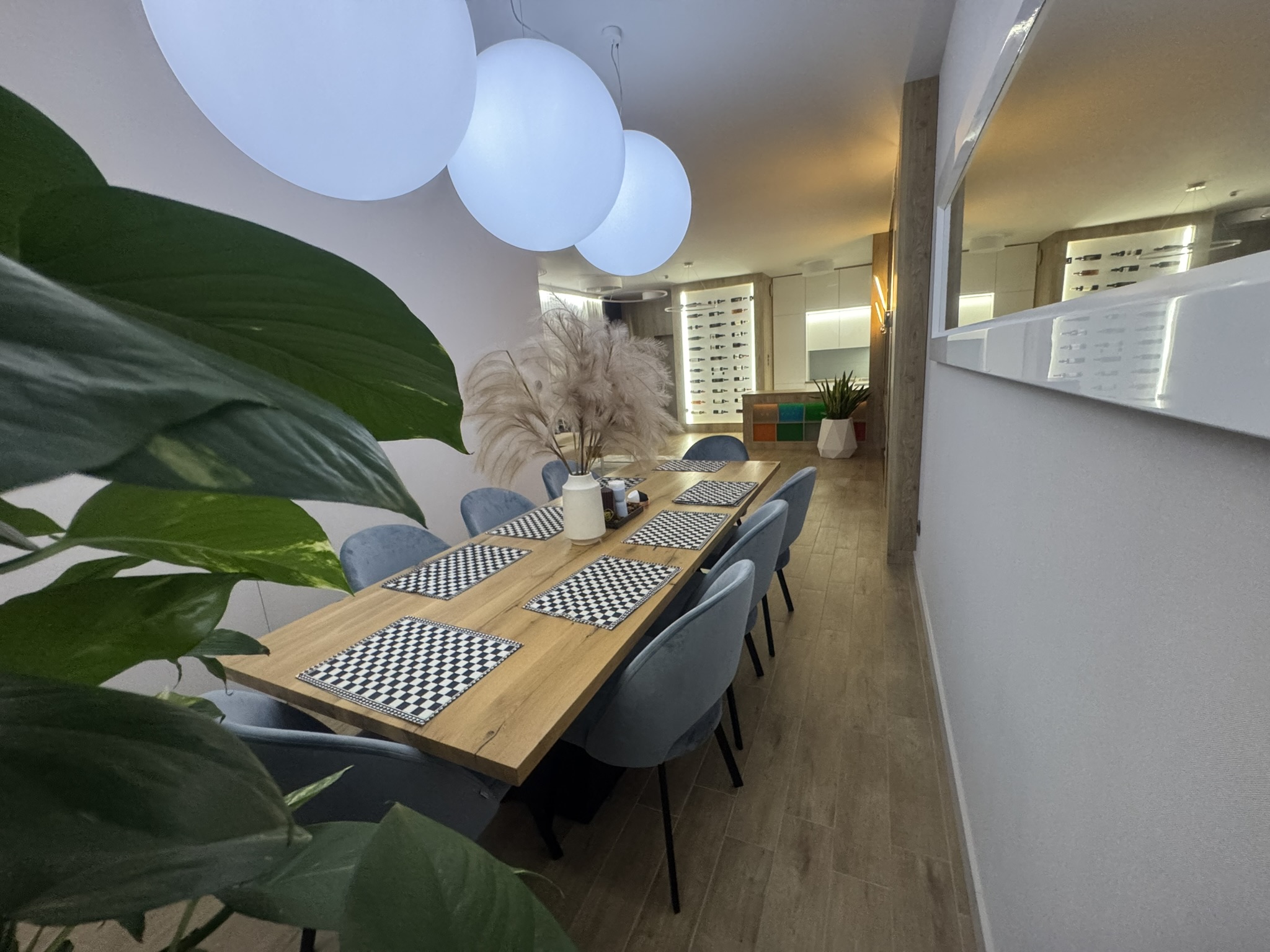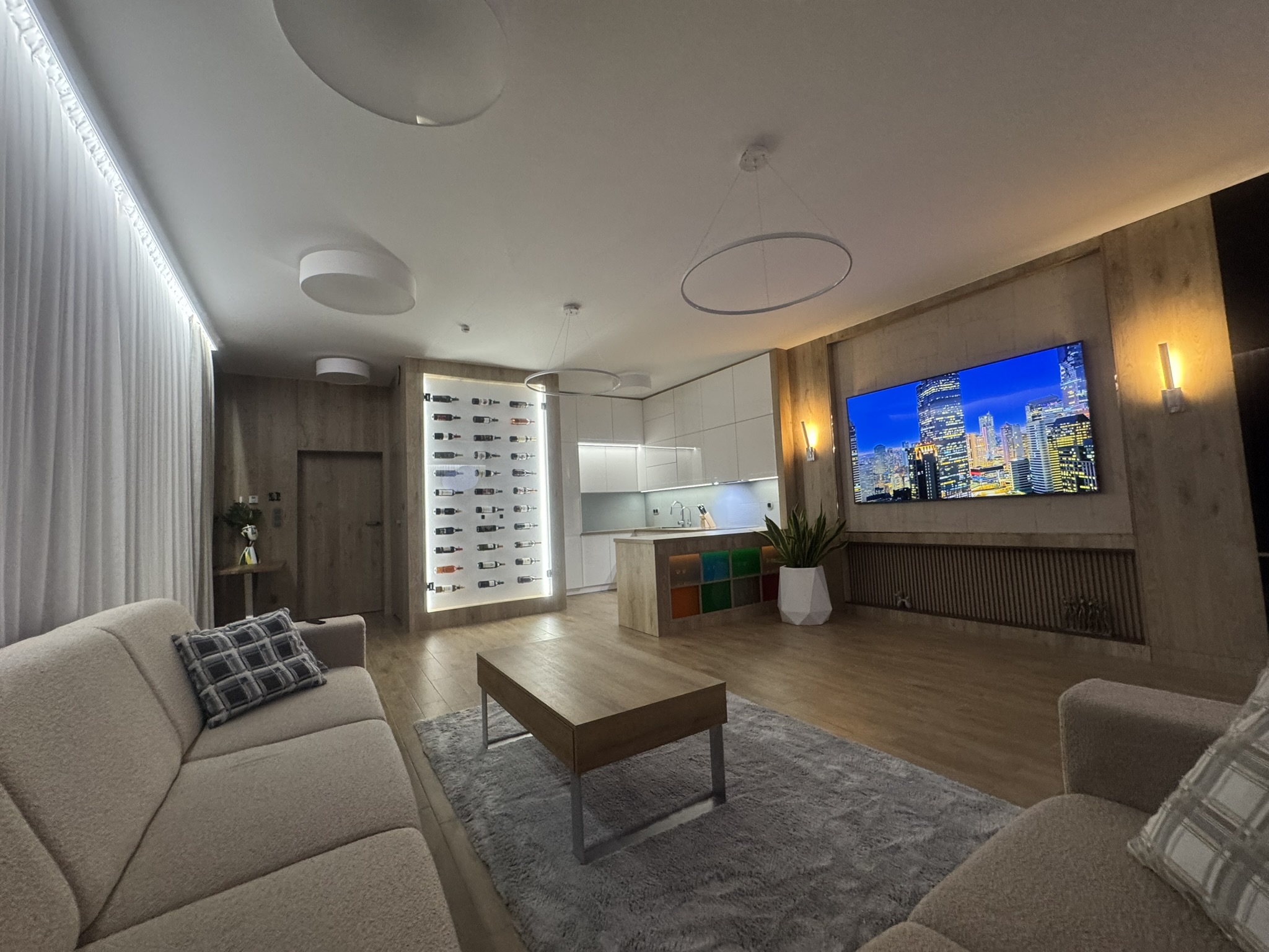 Do dyspozycji mieszkańców jest garaż na dwa samochody z przygotowaną instalacją do ładowania pojazdów elektrycznych. W części wspólnej znajduje się pralnia wyposaż ona w pralkę i suszarkę. W obu kuchniach zamontowano system uzdatniania wody w technologii odwróconej osmozy z mineralizacją.